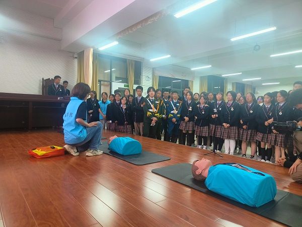 信息学院青协的志愿者们为财大附中的同学们进行了系统的应急救护知识讲解,内容包括心肺复苏(CPR)的基本理论知识、操作流程以及注意事项。志愿者们采用理论讲解与现场演示相结合的方式,确保每位同学都能掌握正确的应急救护方法。在实践操作环节,同学们被分成六个小组,在志愿者的一对一教学中进行实际操作练习。