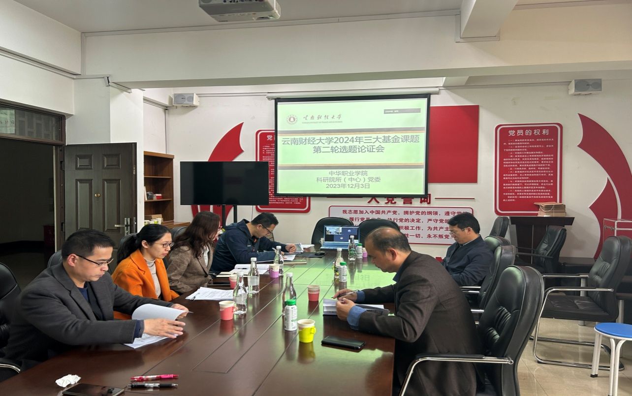 为进一步提高教师申报“三大基金”的质量,增强教师对“三大基金”选题要求的了解,12月3日,科研院所(中心)党委联合中华职业学院以线上线下相结合的方式举办“三大基金”项目申报第二轮选题论证会。会议邀请云南大学张锦鹏教授、云南省社会科学院执行主编杜雪飞、中南财经政法大学冉明东教授、重庆交通大学项露林副教授及买球朱锦余教授、段云龙教授、纳超洪教授等7名专家进行专题指导与论证,两部门全体申报“三大基金项目”的教师参加。