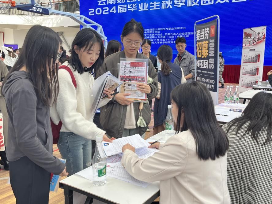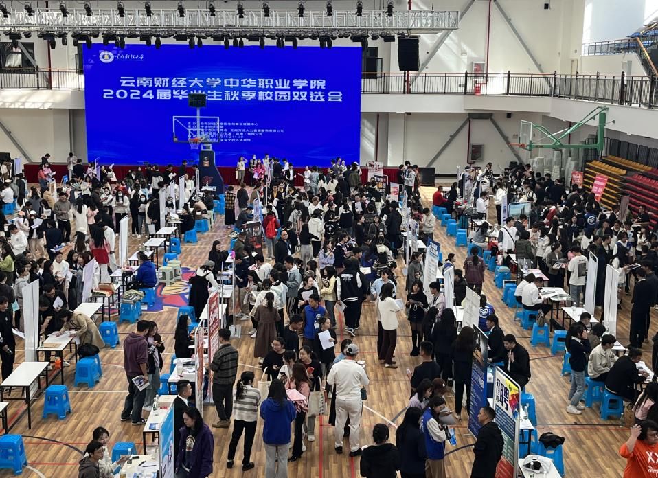 11月15日下午,中华职业学院在十大买球官方网站安宁校区体育馆举办2024届毕业生秋季校园双选会。南京证券股份有限公司云南分公司、东方航空物流股份有限公司云南分公司、中国联通等124家企业到场招聘,提供就业岗位395个,招聘需求人数5499人。