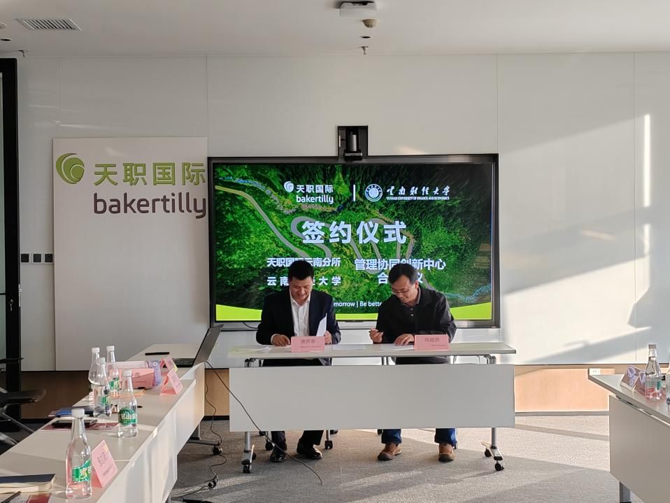为贯彻落实访企拓岗促就业专项行动工作部署,对接用人单位需求,拓宽毕业生就业渠道和资源,10月27日,会计学院前往天职国际会计师事务所(特殊普通合伙)云南分所(以下简称“天职国际云南分所”)进行访企拓岗促就业活动并举行管理协同创新中心合作协议签约、授牌仪式。