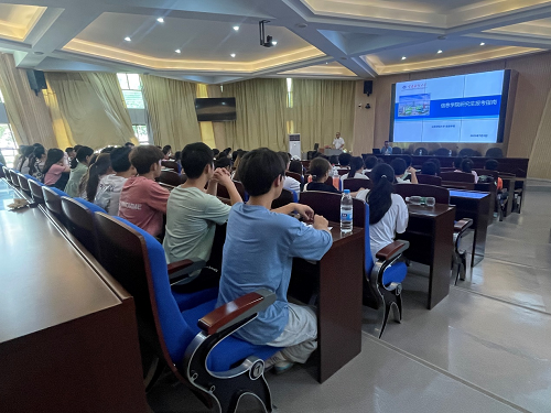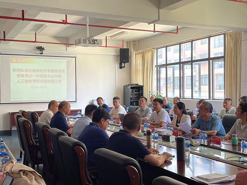 双方分别就学院的基本情况、党建工作开展情况和专业学科建设情况展开交流。双方在各方面均达成了高度共识,并为下一步如何更好的开展合作共建进行了深度研讨。信息学院副院长赵成贵还应邀为人工智能学院学生进行了考研专题辅导。