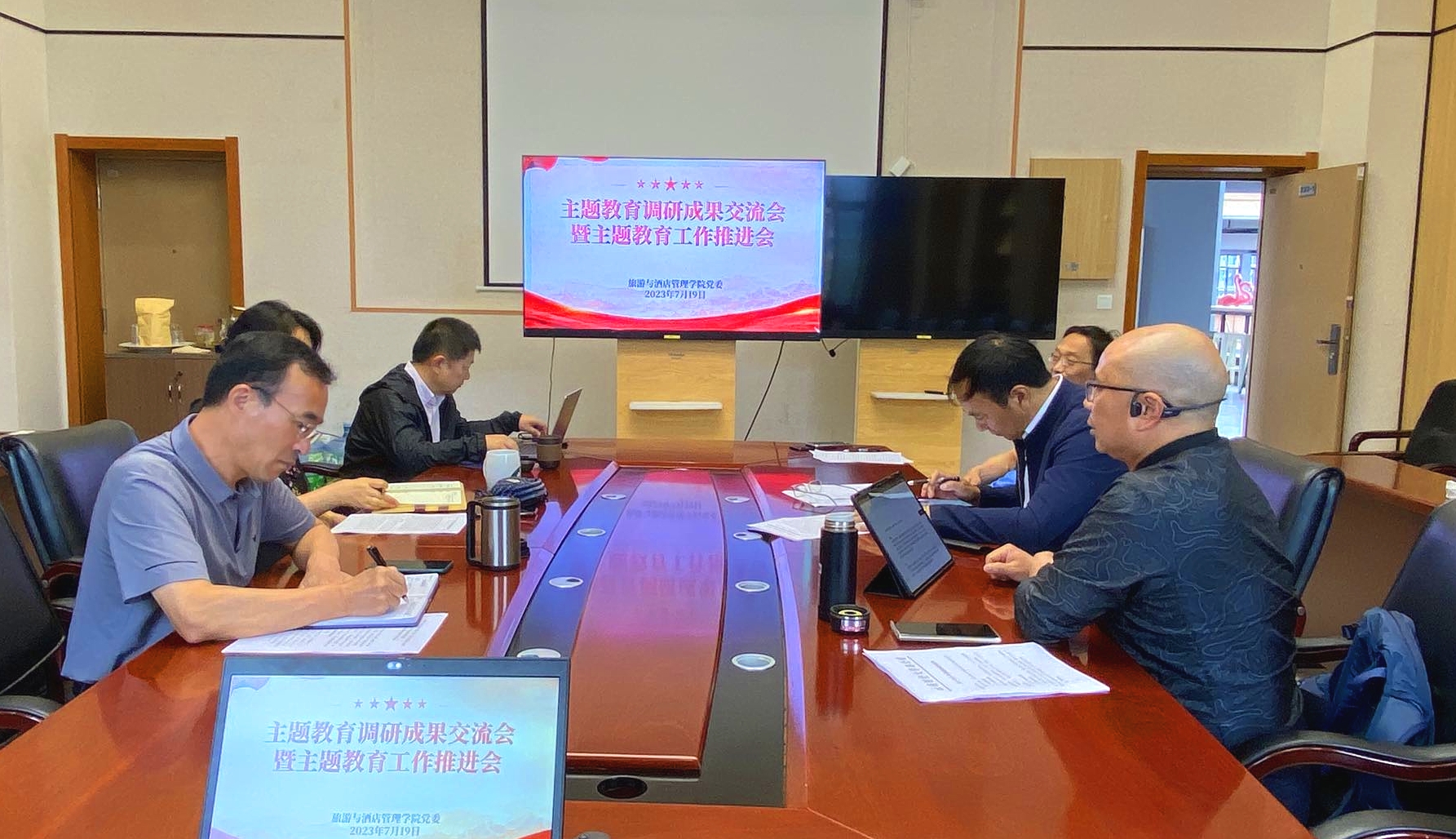 7月19日,旅游与酒店管理学院在齐远楼333会议室举行主题教育调研成果交流会和主题教育工作推进会。党委书记李健主持会议,学院党政班子全体成员参会。