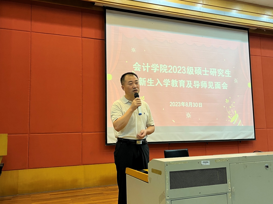 8月30日,会计学院织开展2023级硕士研究生新生入学教育及导师见面会,校党委委员、副校长余怒涛,研究生院院长刘富华,会计学院党委书记李丽忠、副院长纳超洪,以及全体硕士生导师和2023级新生参加会议。会议由会计学院专硕中心副主任曾军主持。