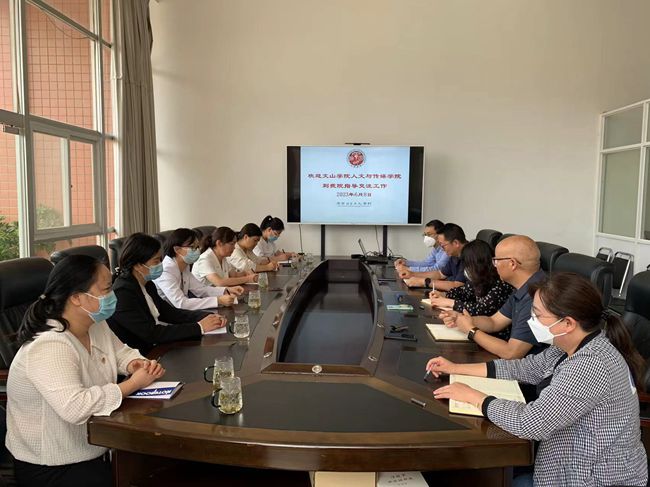 6月8日,文山学院人文与传媒学院党委书记施应凤、副书记马娅丽、支部书记、组织员一行7人到国际语言文化学院进行工作交流座谈。学院领导班子参加座谈会。
