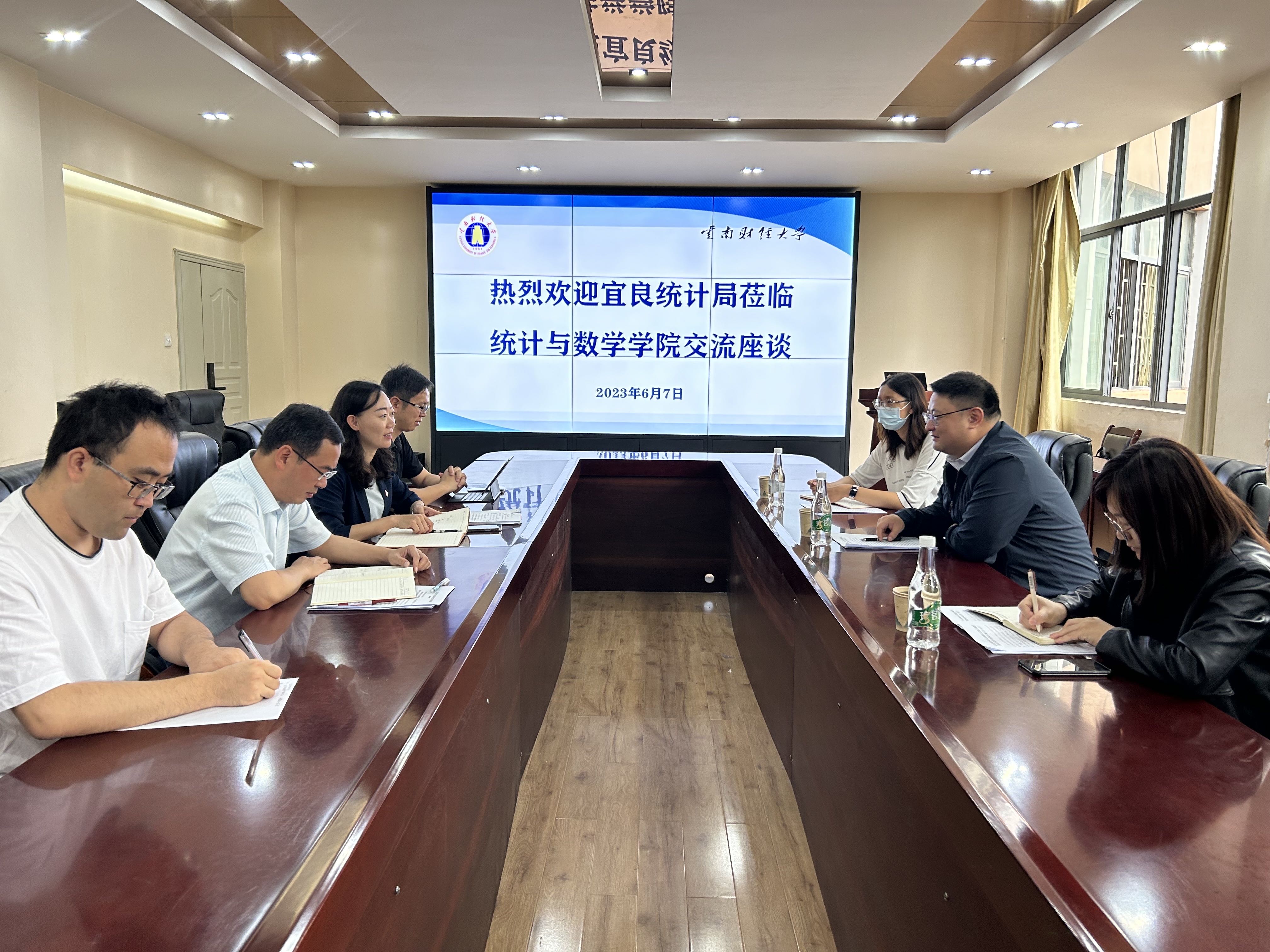 余可佳介绍了宜良县统计局近年来的发展情况,他表示,感谢学院长期以来在服务云南省统计事业发展做出的积极贡献,希望以此次到访学校统计与数学学院为契机,借助学校、学院多方面的优势,做好各项工作,努力取得新发展。学院向宜良县统计局详细介绍了统计与数学学院的发展历程、学科建设、专业情况、学生就业等方面的情况。座谈会上,双方结合各自实际,分别就支部共建、实训基地建设、校企合作等领域进行了交流,同时就下一步如何加强合作,共同推进课题研究和校地合作等事宜作了深入探讨。