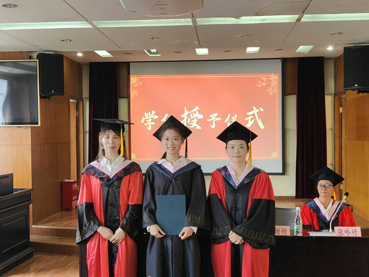 与会领导为优秀毕业生代表们颁发获奖证书。本科生毕业生代表云子和研究生毕业生代表黄雷发言,感谢学校和学院的栽培,希望能学以致用,把学院精神发扬光大,挑起新时代青年的责任担当,并祝愿学院越办越好,再创佳绩。石现明通过寄语视频表达了对毕业生们的真诚祝贺,希望法政学子在奋斗中成就自我,无愧时代、无愧国家。李姗姗、马慧娟分别为毕业生代表颁发学位证、正冠扶苏。仪式开始前,播放了自律委同学为毕业生学姐学生们录制的视频,视频纪录了毕业生们对母校、对学院、对老师们的感恩,对同窗们的祝福。