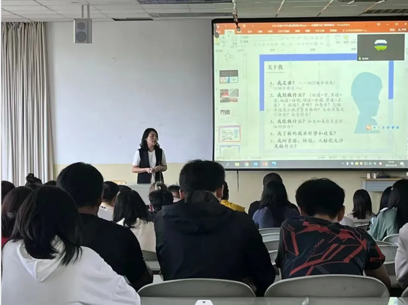 李姗姗就2023年应届生面对的就业大环境展开分析,强调当前机遇与困难并存。她向同学们介绍学院帮助毕业生实现就业的具体措施,并提出几点要求:一是要树立“先就业,后择业”的就业观念,用好“24365”等就业平台积极寻找就业岗位,把握就业机会积极就业;二是杜绝消极等待心理、盲目攀比心理、就业期望过高等求职心理误区;三是及时签订三方协议、就业协议保障自身就业权益;四是已落实就业去向的同学要及时上报去向信息。最后,她叮嘱毕业生们“就业要趁早,简历要做好,面试多跑跑,毕业要确保”,并表达了对毕业生的美好祝福。