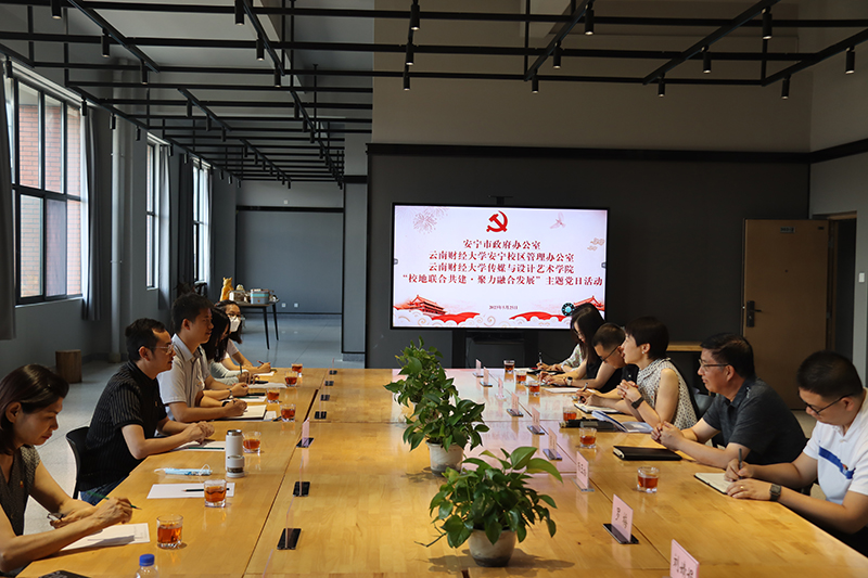 5月25日上午,传媒与设计艺术学院在齐远楼303会议室开展“校地联合共建,聚力融合发展”主题党日活动。安宁市政府办公室副主任顾俊良、晏碧,安宁市机关事务管理局副局长赵玉超以及党员代表,安宁校区管理办公室党支部书记翟勇、组织员杨玉松,传媒与设计艺术学院教工党支部党员代表参加活动,活动由院长袁洪主持。