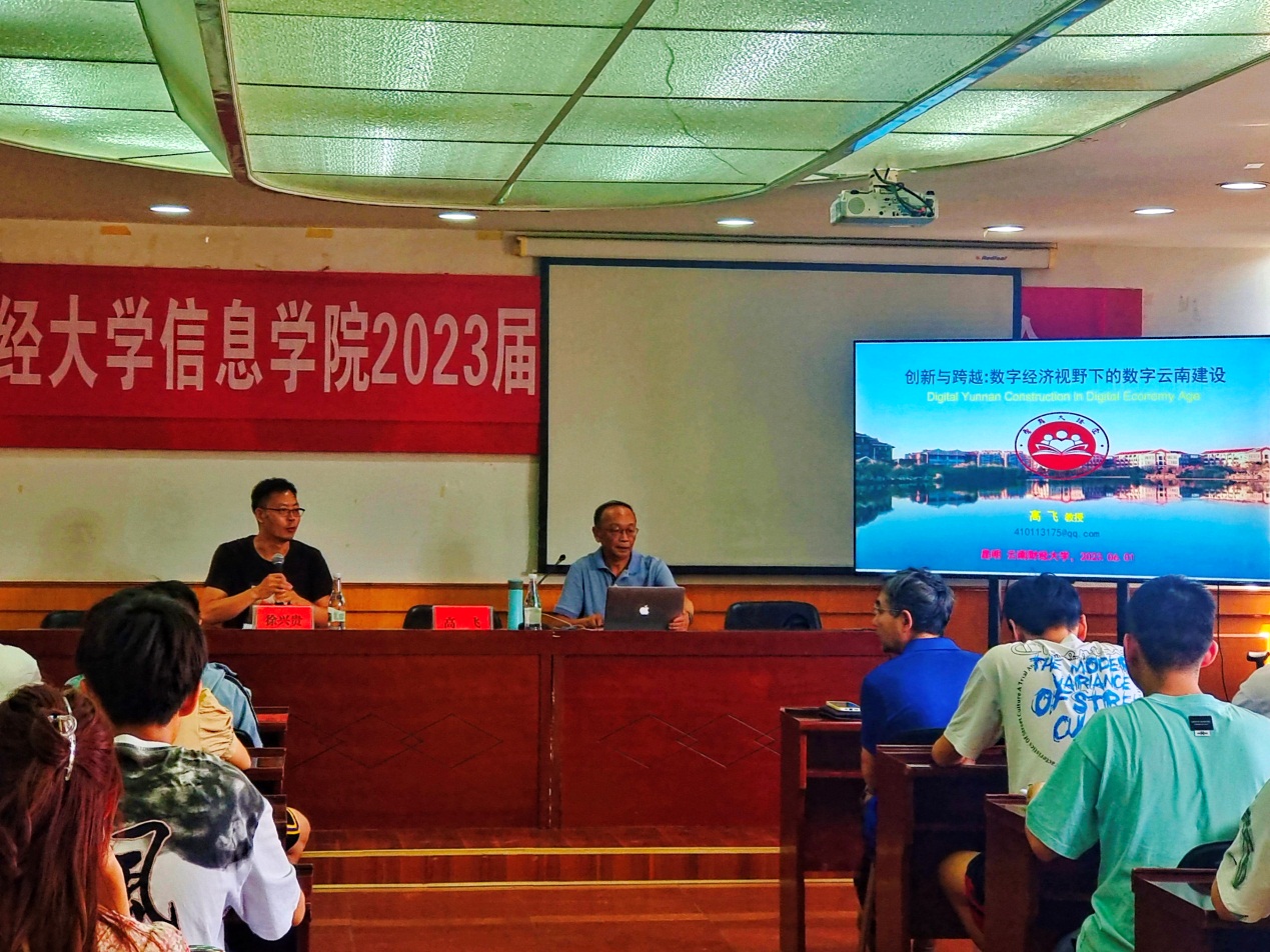 6月1日下午,云财讲坛第五讲在北院卓远楼403举办。讲座由学校科学技术处和信息学院共同举办,特邀云岭大讲堂优秀讲师高飞教授主讲,主题为“创新与跨越:数字经济视野下的数字云南建设”。本次讲座也是信息学院主题教育讲座之一。