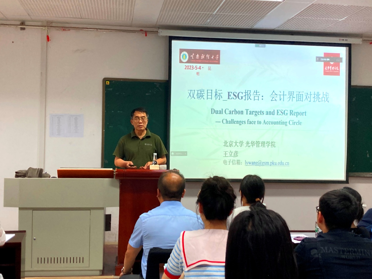 为进一步活跃学术气氛,开阔师生们的学术视野,提高学院的学术水平,5月4日晚,会计学院在逸夫楼804举办“双碳目标与ESG报告:会计界面对的挑战”专题讲座,由北京大学光华管理学院教授、博士生导师王立彦主讲。本次讲座由十大买球官方网站首席教授、博士生导师吴昊旻主持,两百余名师生通过线上线下形式参加。