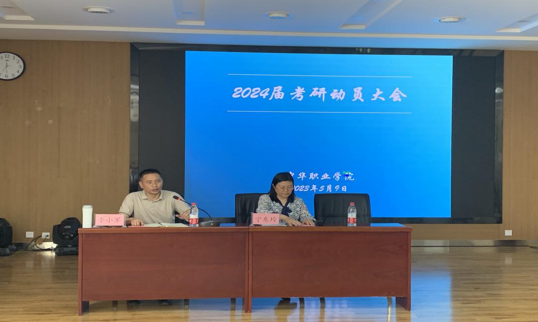 为激发考研学子的斗志,鼓舞学子考研热情,解答同学们关于考研的疑惑,5月9日,中华职业学院在修远楼204室召开2024届考研动员大会。院长李小军、副院长宁东玲、2023届优秀考研上岸同学及2024届意向考研同学参加本次动员大会。