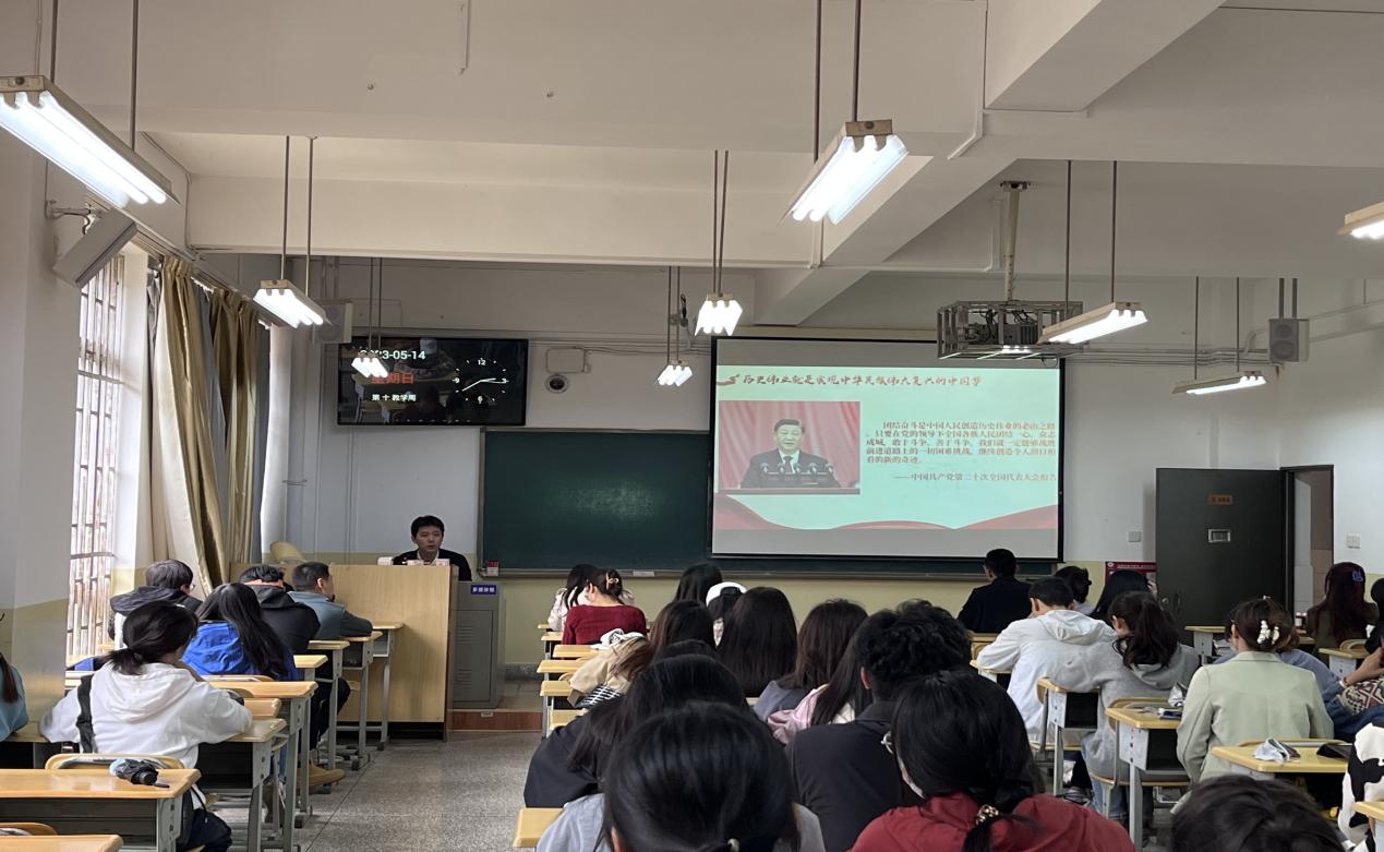 为引导研究生深入学习习近平新时代中国特色社会主义思想,进一步深入学习贯彻习近平新时代中国特色社会主义思想主题教育,5月14日下午,马克思主义学院宣讲团成员王一豪同学以《团结奋斗,是中国人民创造历史伟业的必由之路》为题,为科研院所(中心)直属团支部研究生开展党的二十大精神主题宣讲活动。各院所(中心)学生党员、团员73人参加活动。