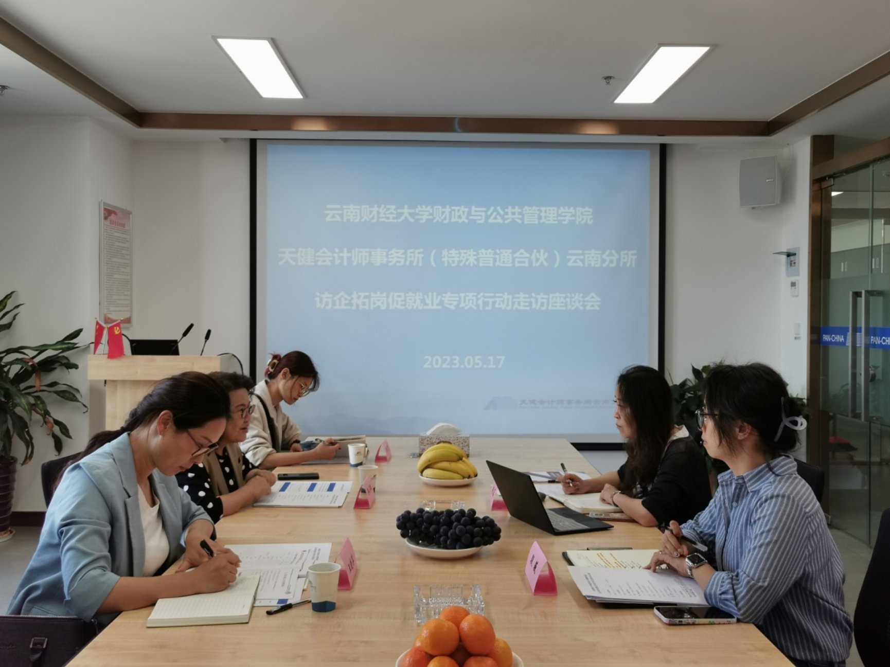 天健会计师事务所云南分所人事专员段薇;神农集团人力资源中心招聘专员龚照袁、李嘉慧;十大买球官方网站财政与公共管理学院教学管理科科长陈美霞、学生管理科科长饶篁、辅导员毛丹参加座谈交流。
