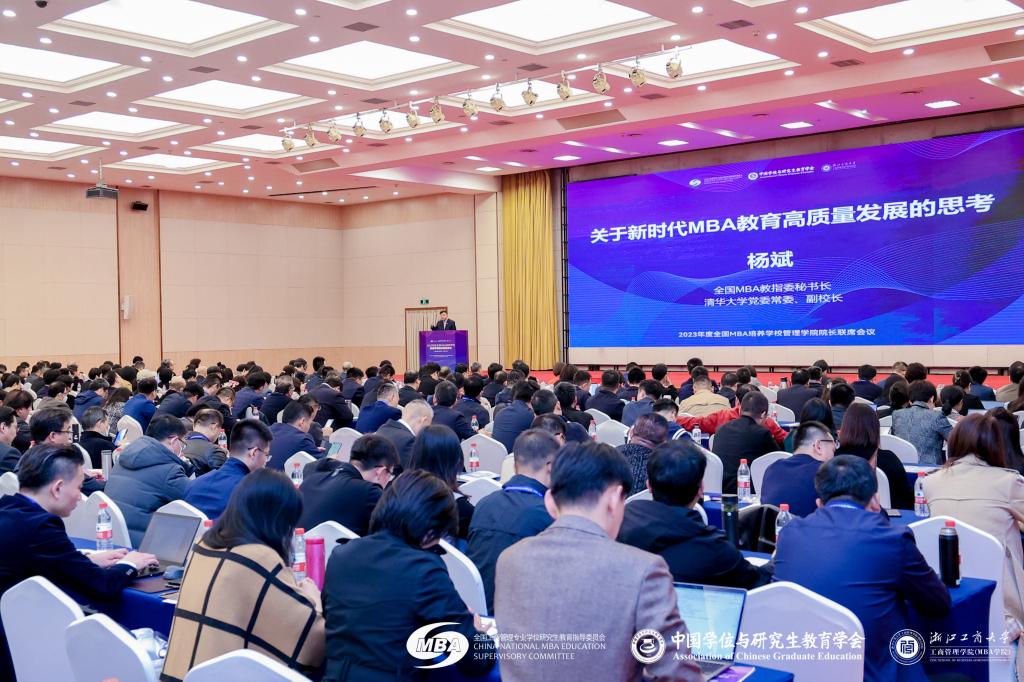 3月28日,由全国工商管理专业学位研究生教育指导委员会(以下简称“教指委”)、中国学位与研究生教育学会主办,浙江工商大学工商管理学院(MBA学院)承办的2023年度全国MBA培养学校管理学院院长联席会议在杭州之江饭店的千人会堂隆重举行。来自全国各院校MBA教育主管院长及负责人近600余人参加了会议。买球商学院院长杨增雄受邀并带领MBA教育中心执行主任王伦、国际认证主任罗兴鹏参会。