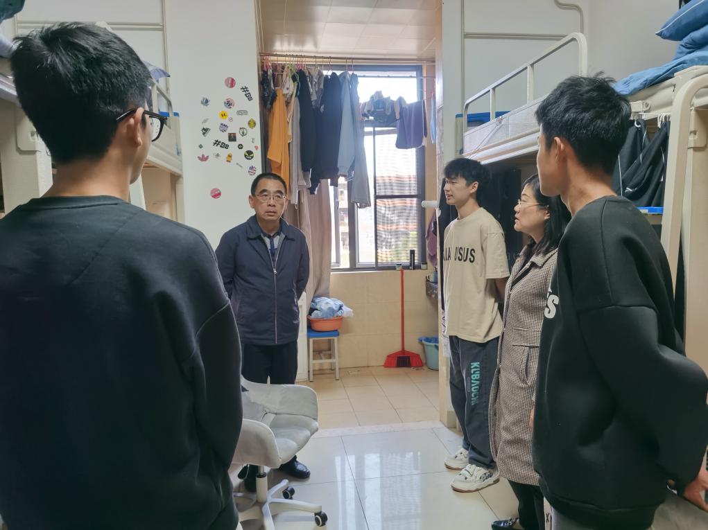 走访过程中,胡海彦与同学们亲切交流,倾听同学们的实际需求,并仔细询问了同学们的宿舍生活、学习情况以及未来的职业发展规划等。交流中,他还与同学们分享了当初宿舍的设计理念,细心叮嘱同学们一定要注意宿舍安全,努力学习,构建宿舍良好学风,营造良好的宿舍人际关系氛围,做到勤通风、勤打扫,保持好宿舍环境卫生,养成良好的卫生习惯。同学们感谢学校创造了良好的学习生活条件,表示宿舍环境和各项设施条件都很好,会勤奋学习、刻苦努力,积极提升综合素质和能力,不辜负学校和老师的期望。