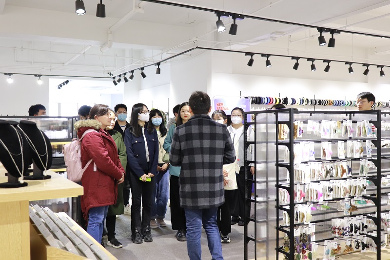 师生们在工作人员的带领下参观了凯越集团等6家企业的办公区、生产车间、直播间、产品展厅等,通过座谈了解了企业规划、业务范围、发展前景、工作内容、薪资待遇等,紧接着开展了现场面试应聘。这种“参观-问答-面试”的模式,以直观高效的方式增进了用人企业和毕业生的双向了解,大大提高了面试效率。校友创业企业的走访交流,大大提升了毕业生们的就业创业热情和自信心。在最后的“电商小语种人才”公益专场对接招聘会中,学院毕业生们与参会的洛克体育用品有限公司等11家企业的人力资源部代表通过线上线下的方式进行了充分的应聘沟通与交流。