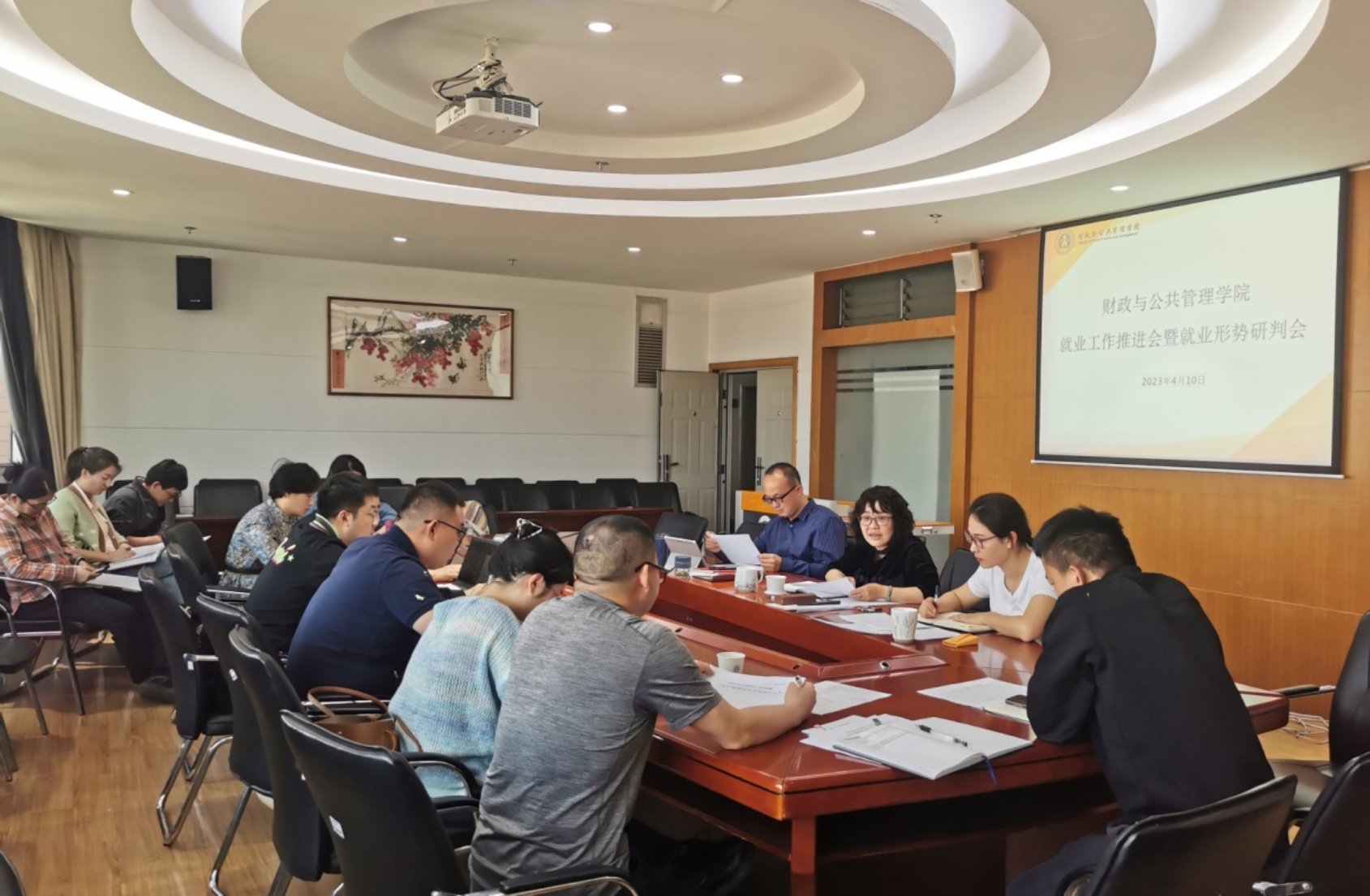4月10日下午,财政与公共管理学院在逸夫楼923会议室召开就业工作推进会暨就业形势研判会。学院党委书记荣小红、院长缪小林、党委副书记王晓芬、各教学系主任、全体辅导员及毕业班班主任参加了会议。会议由荣小红主持。