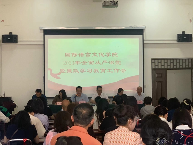 4月14日,国际语言学院在博远楼403召开2023年全面从严治党暨廉政学习教育工作会。会议由学院党委副书记兼纪委书记俞虹主持,学院全体教师参加。