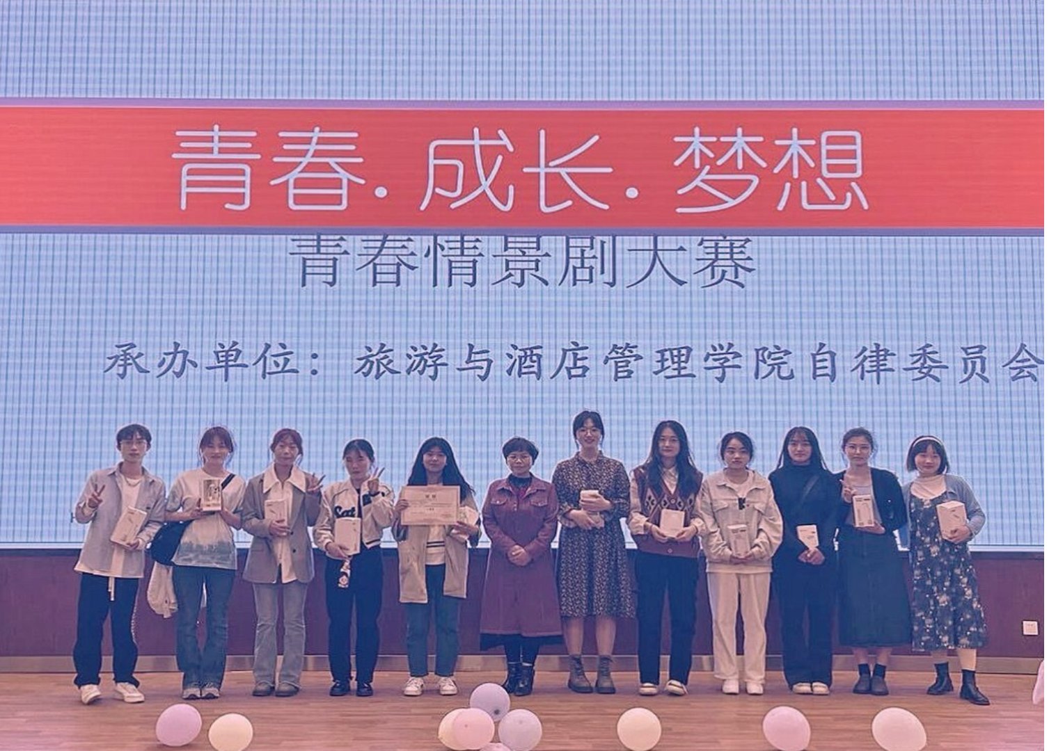 为推进大学生思想教育工作,强化学生心理健康教育,3月24日下午,旅游与酒店管理学院在鹏云一附101报告厅举行了以“青春·成长·梦想”为主题的思政青春情景剧大赛,200余名同学到场观看。