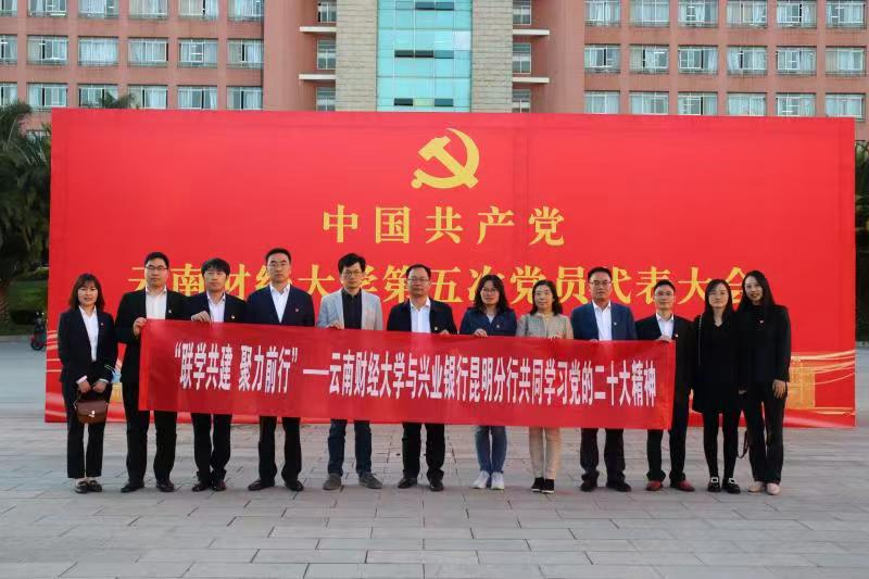 为深入学习贯彻党的二十大精神,11月16日下午,金融学院行政教工党支部和保险系教工党支部与兴业银行昆明分行第一、第八党支部联合开展党建结对共建活动暨共同学习党的二十大精神主题活动。双方党员参加了此次活动。