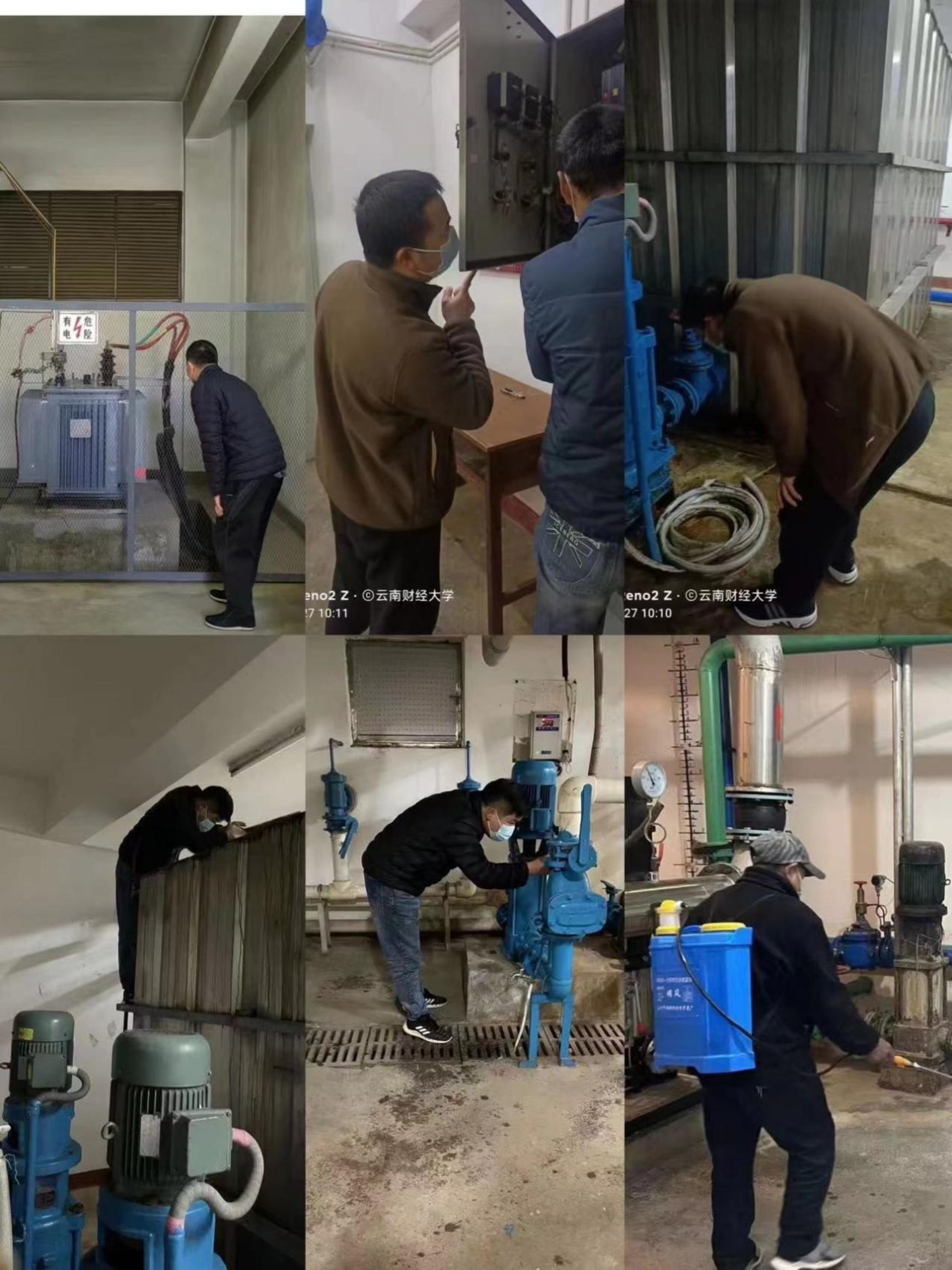 设备运行中心组织14名职工(29日增加至17名)做好水电供应保障、日常维修及抢修、浴室供热、开水供应等服务保障工作,同时统筹人员做好浴室及开水房卫生清洁消毒及浴室开放后的现场秩序维护等管理服务工作。中心副主任带领住在校外的6名职工支援住宅区物业中心在康园小区、高教小区、春园小区对封控的楼栋开展防疫值守工作。