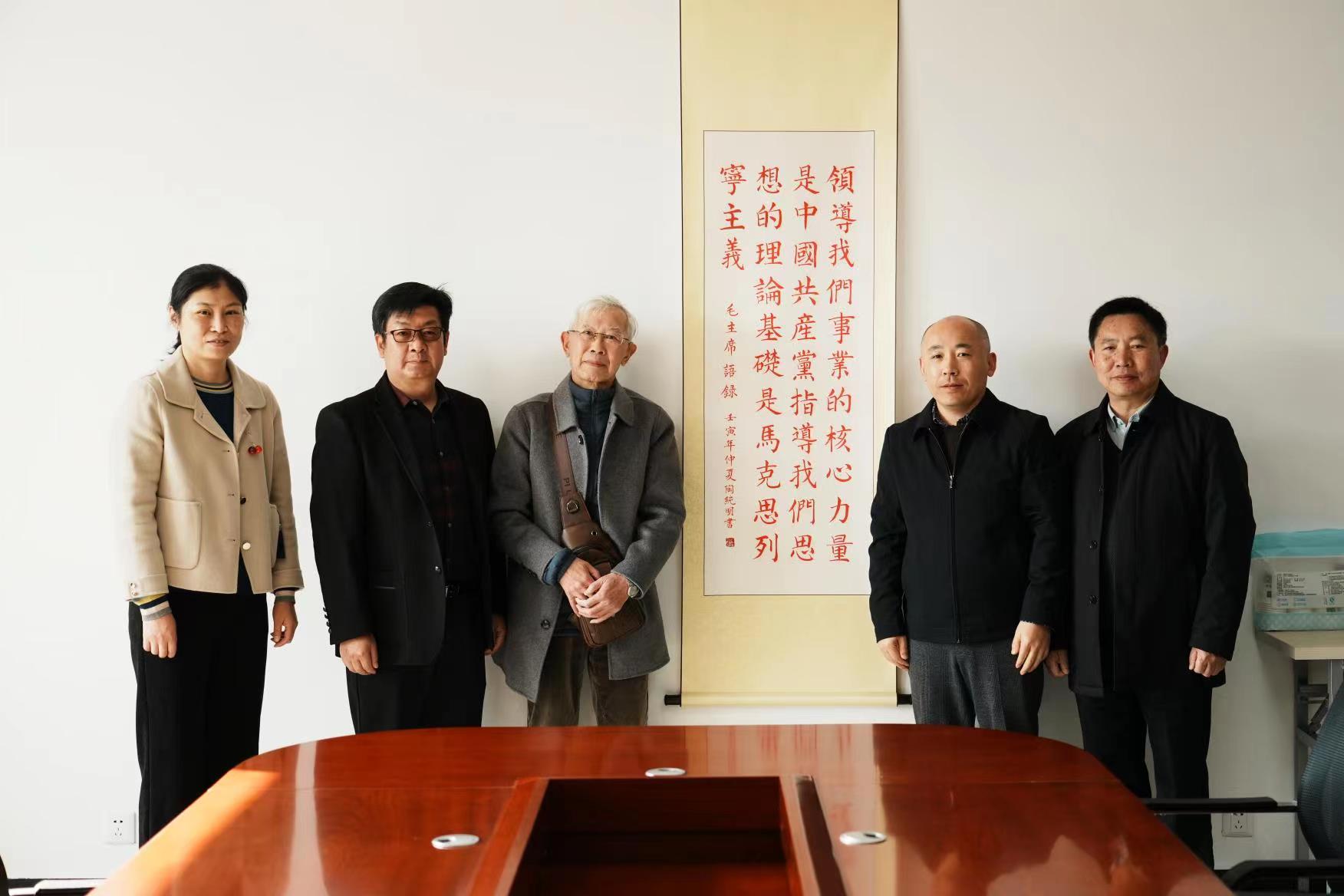 2月23日上午,马克思主义学院举行书法捐赠仪式,学校退休教师陶纯明向马克思主义学院捐赠书法作品。马克思主义学院党委书记李亚军、院长宁乐锋、党委副书记赵小玎接受捐赠作品,并代表全院师生向陶老师表达感谢和敬意。
