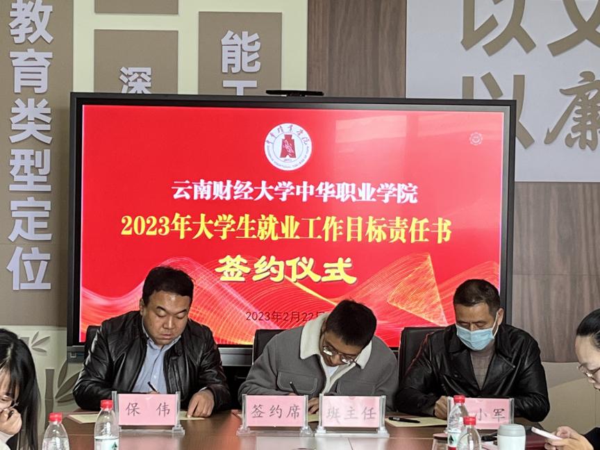 2月22日下午,中华职业学院在修远楼512会议室召开2023届毕业生就业工作推进会。会上,学院党委书记保伟、院长李小军与辅导员代表和毕业班班主任代表分别签订了《十大买球官方网站中华职业学院2023年大学生就业工作目标责任书》。各教学部分管就业工作的辅导员及2023届全体毕业班班主任参加会议。会议由学院党委副书记兼纪委书记张玉琨主持。