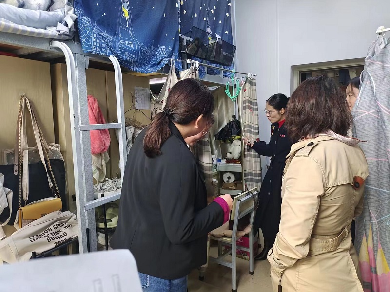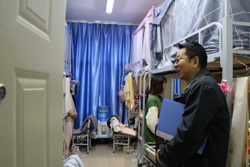 检查走访中,老师们认真检查宿舍的安全隐患及环境卫生情况,要求同学们做好疫情防控、注意用电安全、防范盗窃事件等。同时,老师们围绕思想、学习、生活等方面与同学们进行了深入交流。