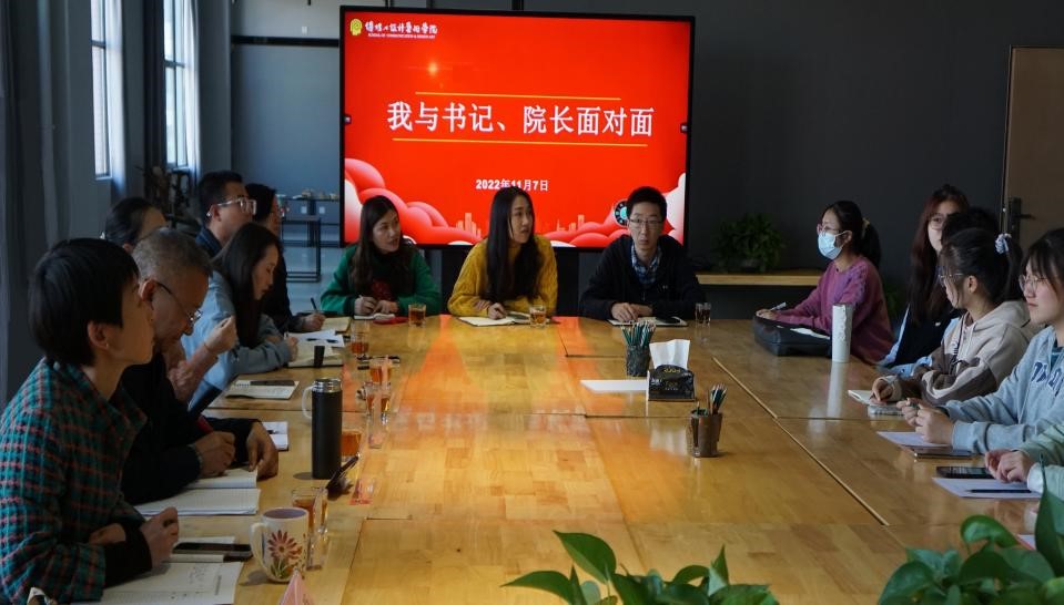 11月7日,传媒与设计艺术学院举行“我与书记、院长面对面”交流座谈,学院党委书记李丽忠,院长袁洪,党委副书记杨青山,副院长唐磊、李晶、崔木扬,学院各科室负责人,全院本科、研究生班级代表参加座谈会。会议由学院团委书记谢天娇主持。