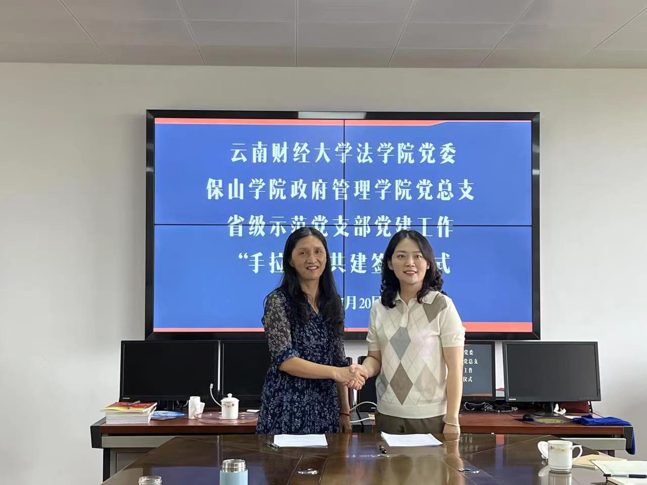 会上,双方举行法学院党委与保山学院政府管理学院党总支省级示范党支部党建工作“手拉手”签订仪式。