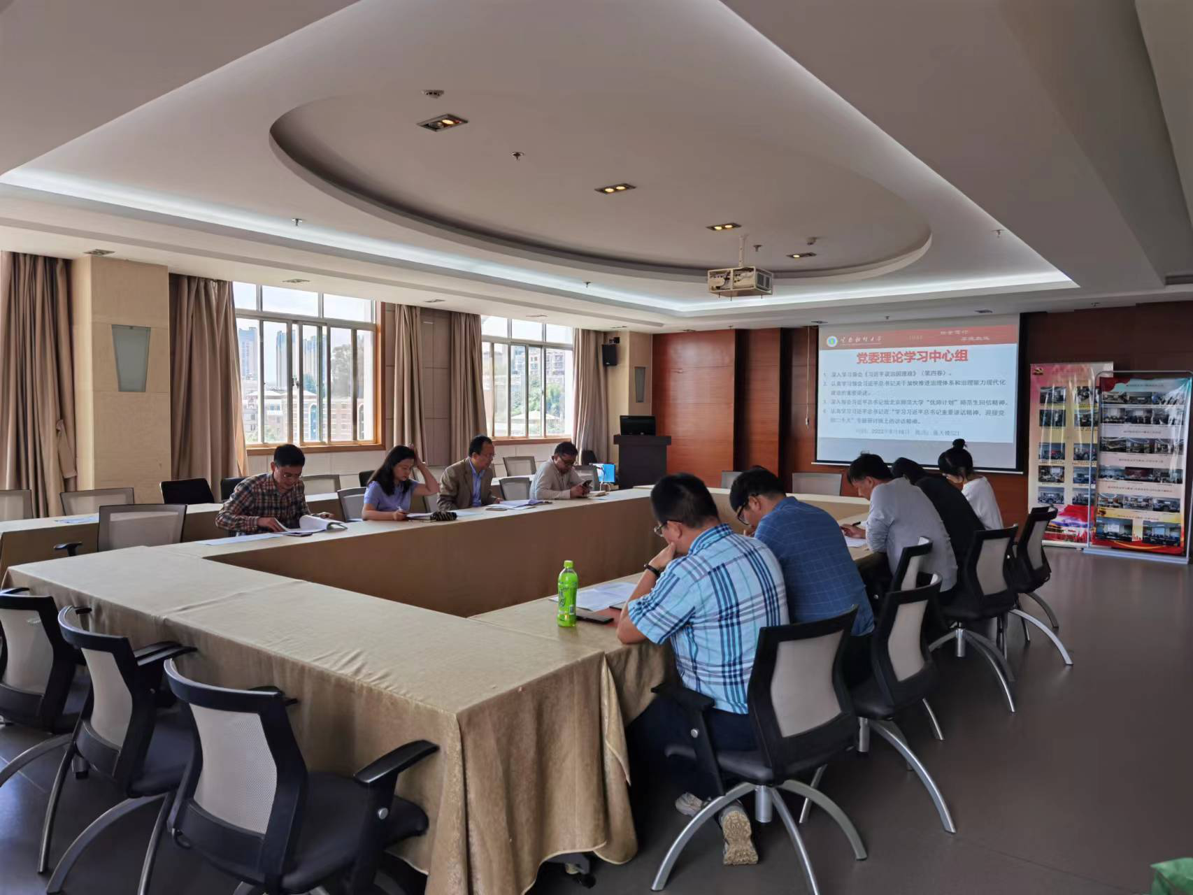 9月16日中午,商学院党委理论学习中心组在南院逸夫楼521会议室开展学习。学院党委书记王敏主持会议,院长杨增雄领学。