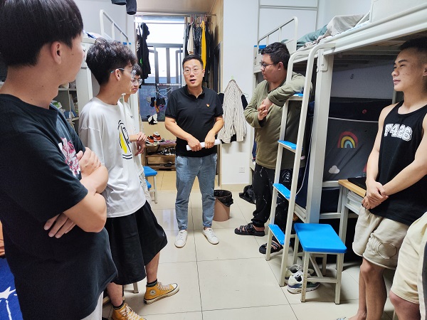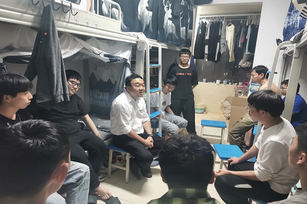 为深入了解疫情防控常态化下学生的学习、生活、思想状况,更好服务学生,6月26日晚上,中华职业学院党委书记沙磊,党委副书记保伟、于浩和全体辅导员、班主任深入走访学生宿舍。