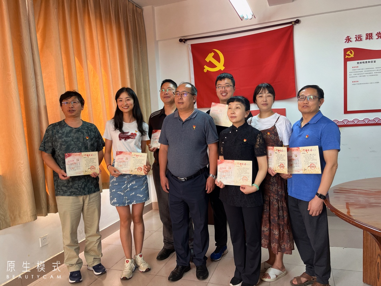 学习结束后,党支部为8名党员同志集体过政治生日,金国兴代表支部为8名同志颁发政治生日卡片并送上政治生日祝福,全体党员面对党旗宣誓,重温了入党誓词。