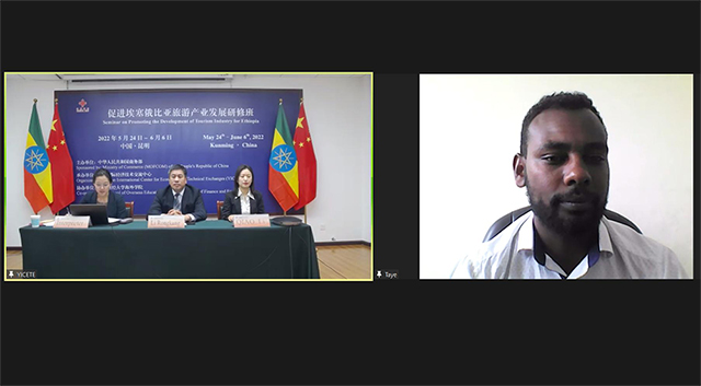 6月6日,由商务部主办、云南国际经济技术交流中心承办、十大买球官方网站海外学院协办的“促进埃塞俄比亚旅游产业发展研修班”结业典礼以线上方式举行,为期14天的研修班培训正式落下帷幕。中心负责人、学员代表塔耶和来自埃塞俄比亚旅游部共15名学员参加结业典礼。