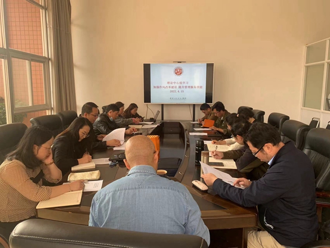 4月15日,国际语言文化学院党委理论学习中心组以“加强作风改革建设,提升管理服务效能”为主题开展理论学习。学院党政领导班子、科室负责人、党支部书记参会,党委书记杨秀伟主持。