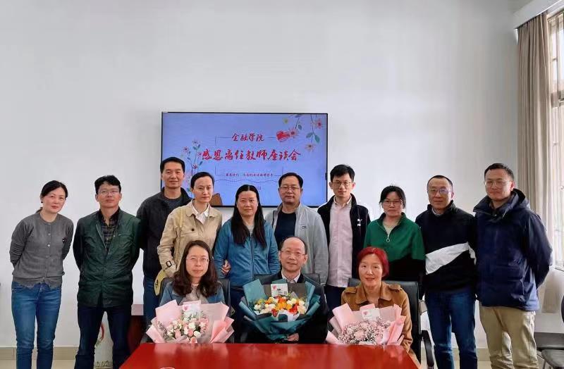 5月5日,金融学院在博远楼111为即将荣休的刘锡标、周若薇以及调至图书馆的何锦举办感恩座谈会。学院老领导张建友、黄儒靖,现任领导班子、系主任和教师代表参会。