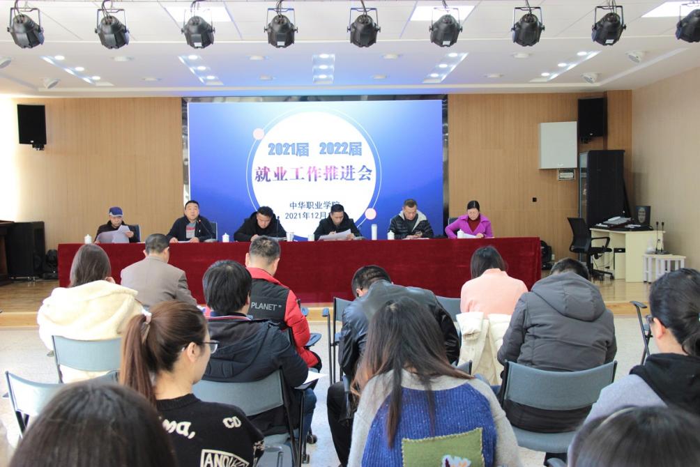 12月16日,中华职业学院在安宁校区修远楼204召开2021届、2022届毕业生就业工作推进会,学院全体党政领导、各专业部主任、辅导员、2021届和2022届毕业班班主任参加会议。会议由学院党委副书记保伟主持。