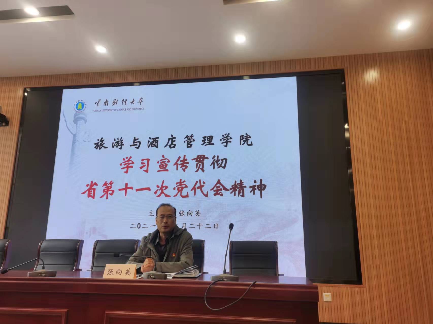 12月22日下午,旅游与酒店管理学院党委在齐远楼220报告厅学习宣传贯彻省第十一次党代会精神。学院党委书记张向英领学,学院全体支部书记及2021年下半年新发展党员参会学习。