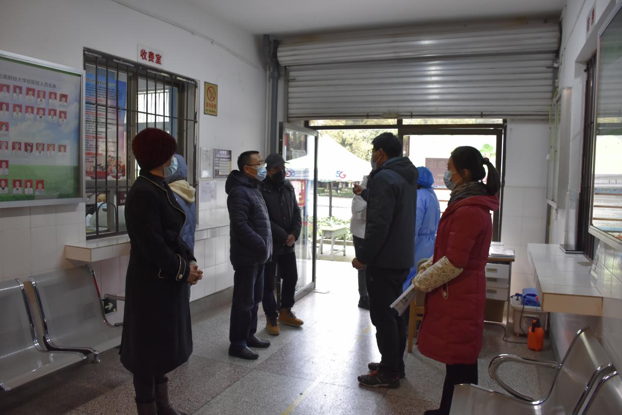 2月21日,副校长彭强、学校办公室主任寸丽锋到博华楼临时医学观察区和校医院实地检查指导春季学期疫情防控工作开展情况,后勤产业集团总经理李光香、副总经理赵云伟参加检查。