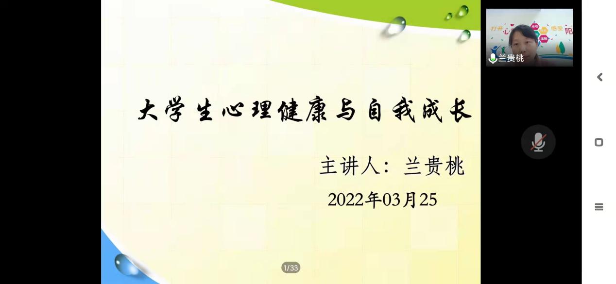 3月25日下午,为促进心理健康教育工作深入开展,教育引导学生珍爱生命、关爱自我、健康成长,全面提高学生的心理健康意识,中华职业学院举办“大学生心理健康与自我成长”心理在线讲座。学院270余名师生线上参加。
