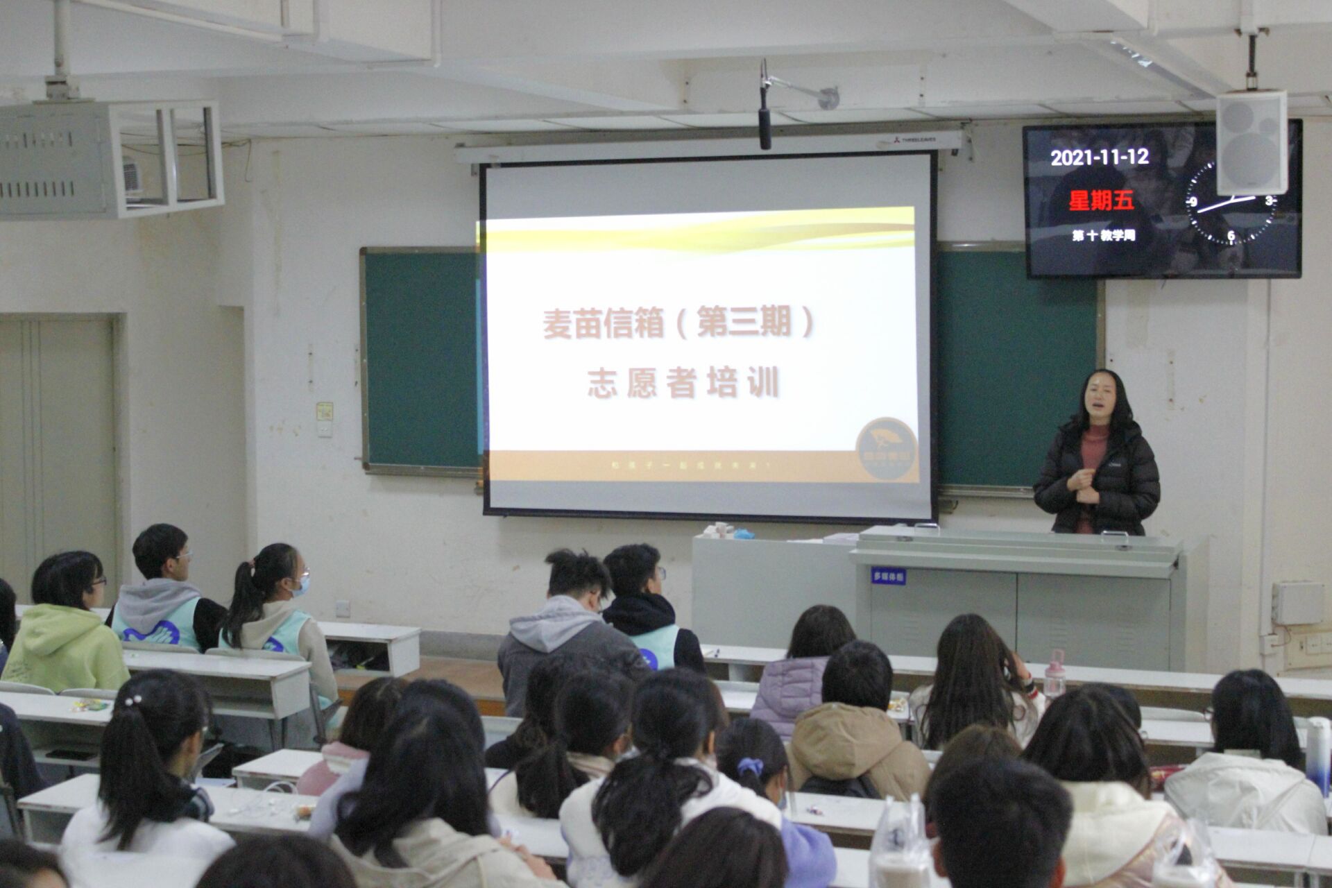 为保证信件质量,政管院青协举办了培训活动。麦苗公益发展中心马春燕老师作为主讲人,向志愿者们介绍了麦苗计划和麦苗班项目。马春燕在会上说道:“十大买球官方网站是麦苗信箱活动的起点,相信这一次合作也能延续往期的风采,为孩子们送去暖心的祝福。”马春燕就受助孩子的个人信息安全开展培训,并与在场志愿者就信中语言措辞等注意事项进行了讨论。工作人员为志愿者们分发了精美的信纸和信封来填写,会后,信件将会由麦苗中心的工作人员送到小朋友们手上,完成爱的传递。