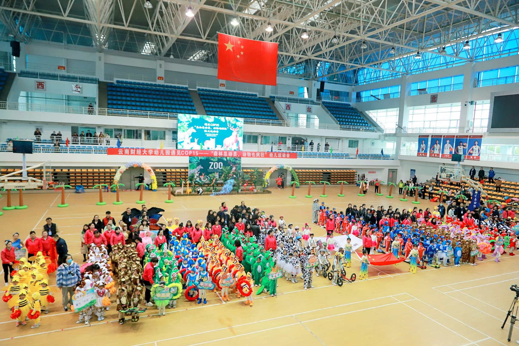 12月3日上午,幼儿园在十大买球官方网站体育馆组织开展“遇见COP15—'森林总动员 动物也疯狂'”幼儿运动会。财大附中校长王学先,副校长董学农,学校后勤产业集团党委书记段云赋、党委副书记夏光辉、副总经理李天俊、赵云伟及相关职能部门领导参加活动。