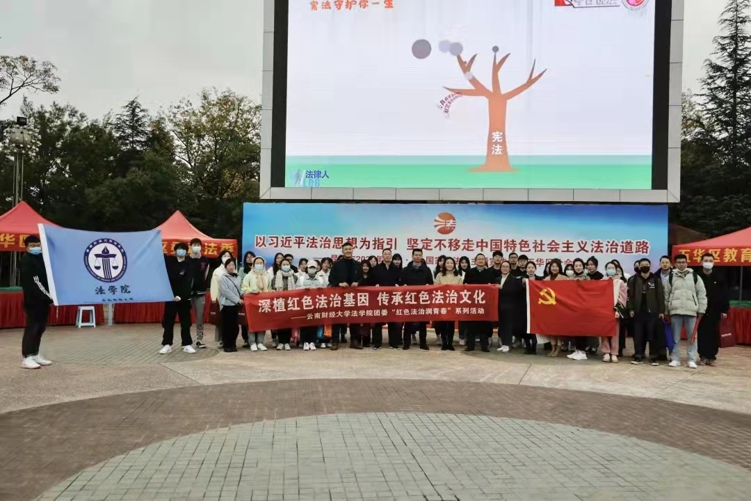 “宪”在行动·树立法治理念。法学院参加昆明市“12·4”国家宪法日主题宣传五华区分会场活动,协助参展单位进行宪法宣传和法律知识普及,贡献法学青年的青春力量,营造浓厚的宪法学习宣传氛围。依托学院党委开展的“我为群众办实事,宪法宣传勇担当”的活动,学院志愿者们在公园内张贴了宪法主题的宣传海报、标语等,并开展面对面的法律服务和宪法宣传。学院党委书记李姗姗、团委书记李浩以及学院教师到现场与同学们一同开展宣传活动,对志愿者的准备工作和活动效果予以充分肯定。