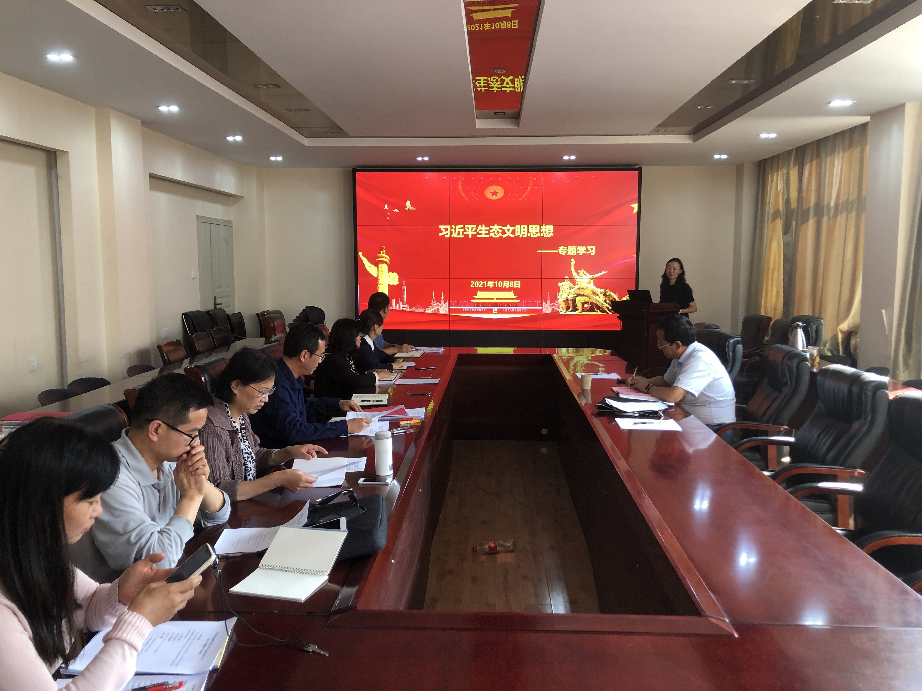 10月8日下午,统计与数学学院在北院卓远楼305会议室举行2021年第七次党委理论学习中心组专题学习,围绕习近平生态文明思想开展学习。校党委副书记桂正华到会指导,学院院长陈飞主持专题学习。