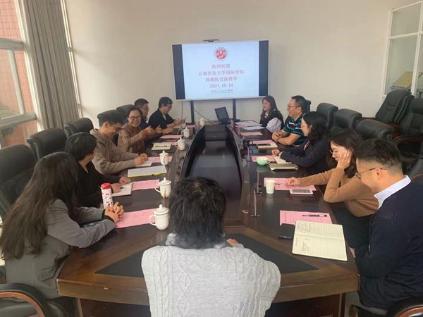10月14日上午,云南农业大学国际学院院长张立敏,副院长孙康,教学办主任、农商专业负责人徐阳,汉教专业负责人李顺琴,留学生(国际培训)办公室主任陈亮,雅思教研室负责人周雯一行6人到买球国际语言文化学院进行交流。国际语言文化学院党委书记杨秀伟、副书记兼纪委书记俞虹、副院长孙婷婷、教学科长符世鸿、团委书记马婧、中文系主任陈龙、大学语文教研室主任姜燕参加会议。