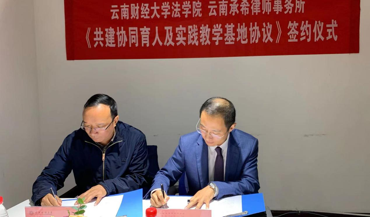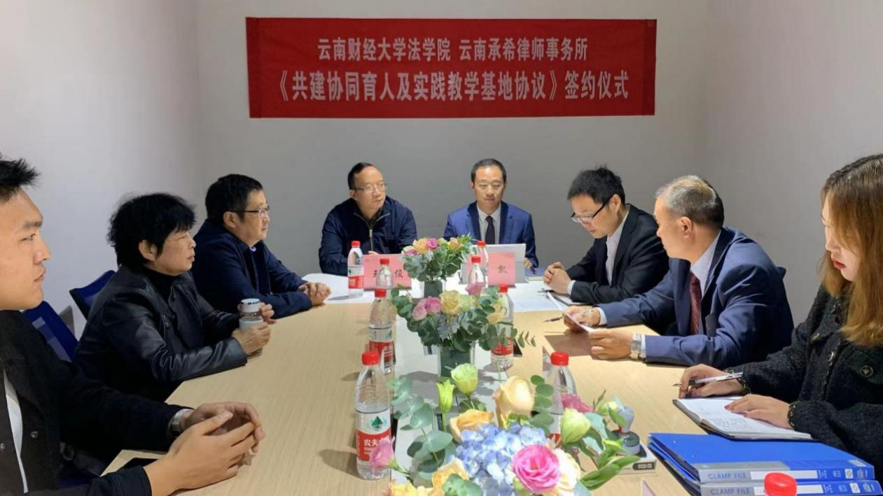 为深入贯彻落实习近平总书记关于法学教育和法治人才培养的重要指示精神,进一步强化学院实践教学基地建设,法学院于10月20日对校友企业云南承希律师事务所进行回访,双方签订了《法学院实践教学基地共建合作协议》。仪式由云南承希律师事务所魏开军律师主持。