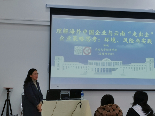 11月3日上午,由国际语言文化学院和科学技术处联合承办的云岭大讲堂“深度解读海外中国企业与云南‘走出去’企业策略:环境、风险与实践”讲座在买球举行。云南大学教授、博士生导师陈瑛担任主讲。讲座由国际语言文化学院党委副书记俞虹主持。