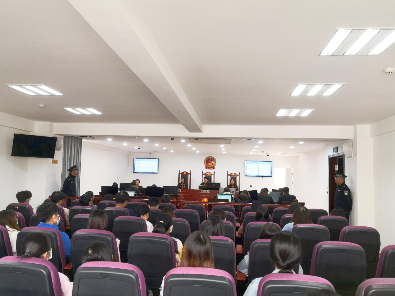 为深化实践教学方法改革,提高法学专业学生的实践能力,7月22日上午,法学院仿真诉讼首次庭审在昆明市盘龙区人民法院民事第21号民事审判庭举行。庭审期间,盘龙区人民法院院长范今颖及部分盘龙区人大常委会委员到庭观摩。
