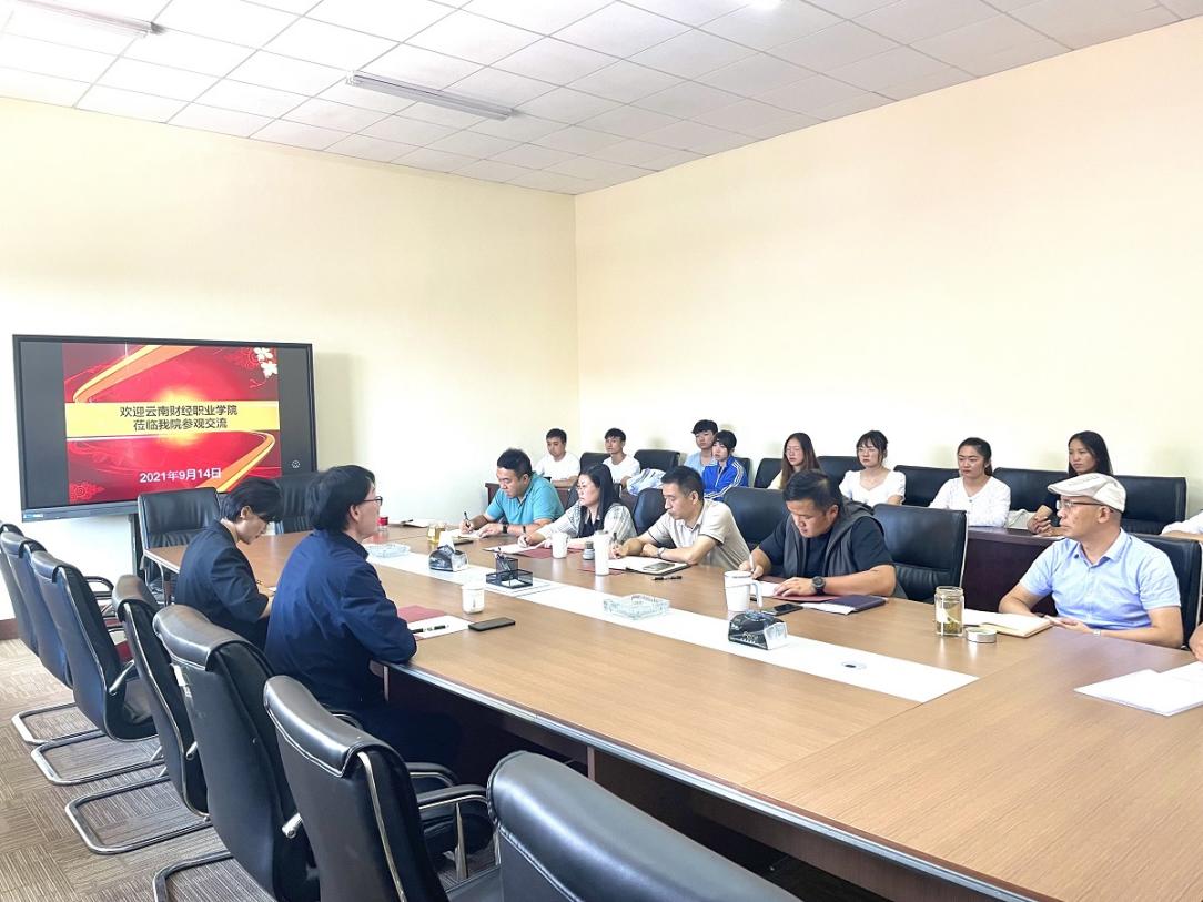 9月14日,中华职业学院在修远楼204室举行云南财经职业学院专升本学生回访座谈会。云南财经职业学院党委书记张金甫、招生与就业处处长严颖,中华职业学院党委书记沙磊、院长李小军、党委副书记保伟、副院长宁东玲、副院长陈应龙以及16名从云南财经职业学院专升本至中华职业学院就读的学生代表参加座谈会,会议由沙磊主持。