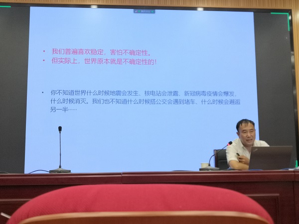 为帮助新同学更好适应环境变化,开启美好大学生活。9月24日下午,旅游与酒店管理学院在齐远楼220报告厅举行“如何增强反脆弱性,在不确定性环境中获得成长”新生领航教育讲座。学院党委副书记、学校辅导员名师工作室主持人李永祥担任主讲。讲座采用线上线下相结合的方式,40余名同学参加现场活动,来自各学院的400余名新同学线上观看。
